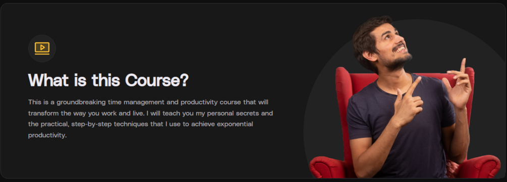This is a groundbreaking time management and productivity course that will transform the way you work and live. I will teach you my personal secrets and the practical, step-by-step techniques that I use to achieve exponential productivity.